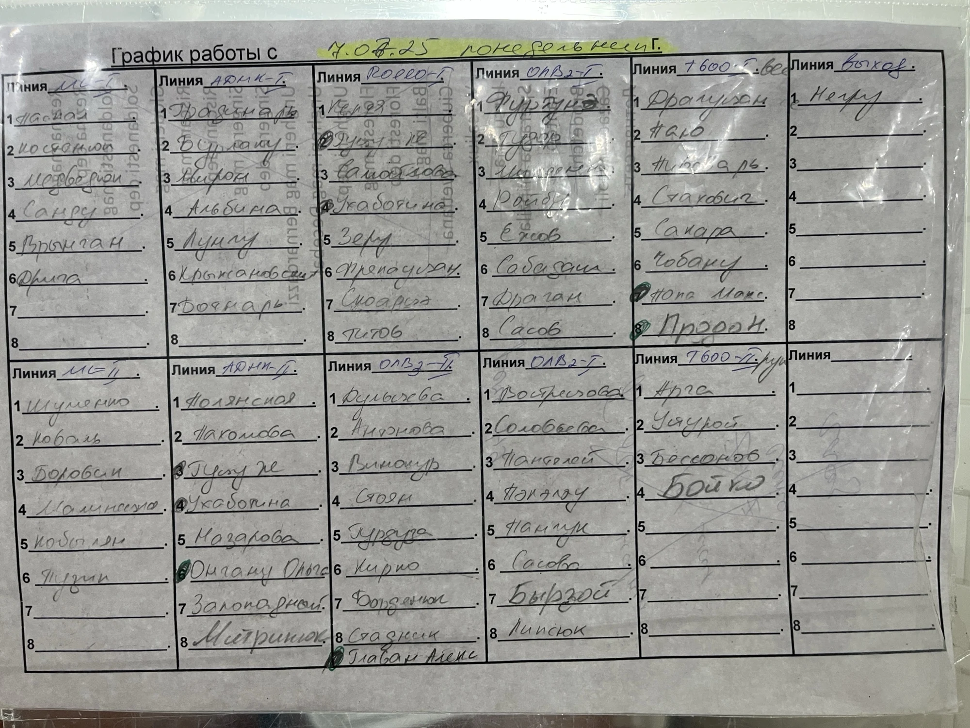 Packing list:
